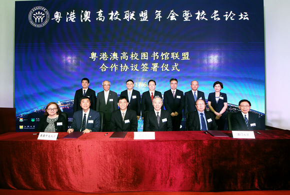 ![]() 政府嘉宾以及粤港澳高校联盟26所成员院校代表在联盟年会聚首一堂 中央人民政府驻香港特别行政区联络办公室谭铁牛副主任在致辞中概述了大湾区未来的建设,并寄语联盟要发挥三地高校独特的优势,达成互动互助互惠,在粤港澳大湾区的建设发展中,担当好体制机制创新的引领者、支撑经济社会发展的发动机、培养创新人才的蓄水池、促进民心相通的连接器、服务科学决策的思想库等重要角色,打造成有全球影响力、世界一流的高校联盟。 ![]() 罗俊校长(前排左四)、程焕文校长助理(前排左三)与香港中文大学、澳门大学代表签订粤港澳高校图书馆联盟合作协议 中央人民政府驻澳门特别行政区联络办公室文化教育部、香港特别行政区政府教育局、广东省教育厅、澳门特别行政区高等教育辅助办公室、广东省人民政府港澳事务办公室等政府机构相关代表也出席了本次会议。 粤港澳高校联盟由我校率先倡议,联同香港中文大学及澳门大学共同发起,以整合优化粤港澳大学优质教育资源,共同培养三地高素质人才,提升三地科研创新合作,推动三地共同迈向知识型经济时代为宗旨。联盟于2016年11月在我校成立,体现了粤港澳三地高等教育学府在达致教研卓越、培育新一代及服务社会方面的精诚合作,推动三地协同发展。联盟成员包括广东省10所高校:中山大学、华南理工大学、暨南大学、华南农业大学、南方医科大学、广州中医药大学、华南师范大学、广东工业大学、广东外语外贸大学及汕头大学;香港地区9所院校:香港中文大学、香港大学、香港公开大学、香港城市大学、香港科技大学、香港浸会大学、香港理工大学、香港教育大学及岭南大学;以及澳门7所院校:澳门大学、圣若瑟大学、旅游学院、澳门城市大学、澳门科技大学、澳门理工学院及澳门镜湖护理学院。 |