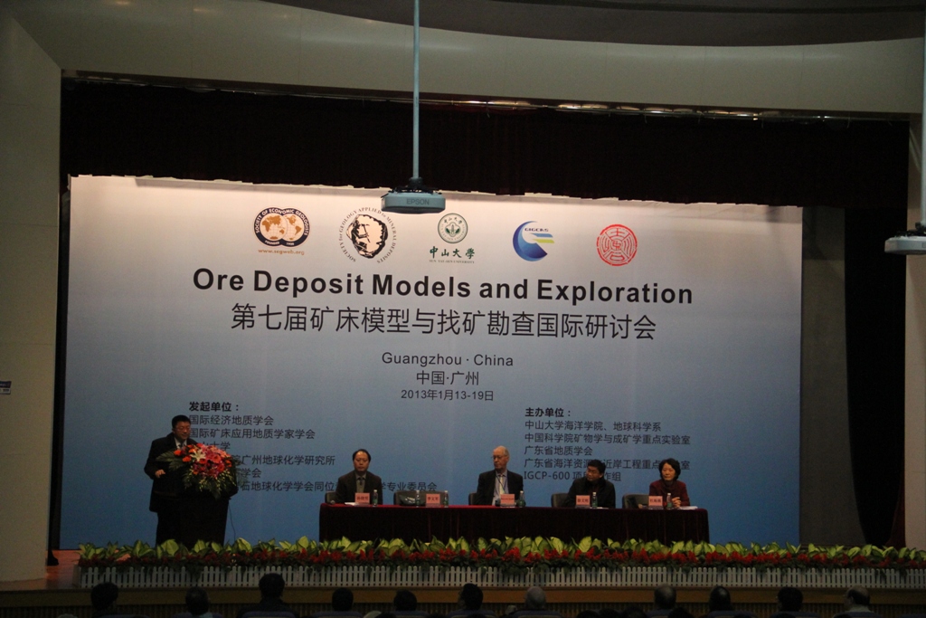 近年来,随着全球性矿产勘查及矿业开发的持续发展,矿床模型概念不断被补充完善,并且在实践工作中受到了全球矿产勘查工作者的广泛认可。为促进学术交流,推动学术与勘查的融合,提高找矿效率,经国际经济地质学会(SEG)、国际矿床应用地质学家学会(SGA)、中山大学、中国科学院广州地球化学研究所、广东省地质学会、加拿大多伦多大学等单位共同发起,“第七届矿床模型与找矿勘查国际研讨会”于1月13日至19日在中山大学南校区隆重举行。会议邀请了Steve Scott等多位国际最著名的矿床学者及找矿勘查专家介绍世界重要矿床类型的成矿模型、最新研究成果及其在找矿勘探中的应用,并现场展示近千块从国外运来的世界典型矿床的实物标本和图件。来自美国、加拿大、澳大利亚、沙特、蒙古和中国等40多个高等院校、科研机构、地质勘查和政府管理部门等单位的200多位代表参加了研讨会。