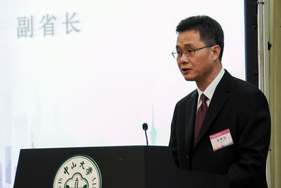 11月15日下午,“粤港澳高校联盟”创盟大会在我校广州校区南校园怀士堂举行。广东省人民政府副省长蓝佛安、教育部港澳台事务办公室常务副主任赵灵山、国务院港澳事务办公室交流司巡视员黄光、中央人民政府驻香港特别行政区联络办公室教科部副巡视员张总明、中央人民政府驻澳门特别行政区联络办公室广东联络部部长张春昉,广东省教育厅厅长罗伟其、香港特别行政区政府教育局局长吴克俭、澳门特别行政区高等教育辅助办公室主任苏朝晖、广东省人民政府港澳事务办公室副主任叶维园、广东省教育厅副厅长邢锋;联盟首届理事会理事长、中山大学校长罗俊,联盟首届理事会副理事长、香港中文大学校长沈祖尧,联盟首届理事会副理事长、澳门大学校长赵伟,以及26所联盟成员高校代表等共计70余人出席会议。大会由中山大学副校长李善民主持。 ![]() 广东省人民政府副省长蓝佛安致辞 赵灵山常务副主任、吴克俭局长、苏朝晖主任、罗伟其厅长分别致辞,表达了对联盟成立的祝贺和期望。 ![]() 联盟首届理事会副理事长、香港中文大学校长沈祖尧致辞
