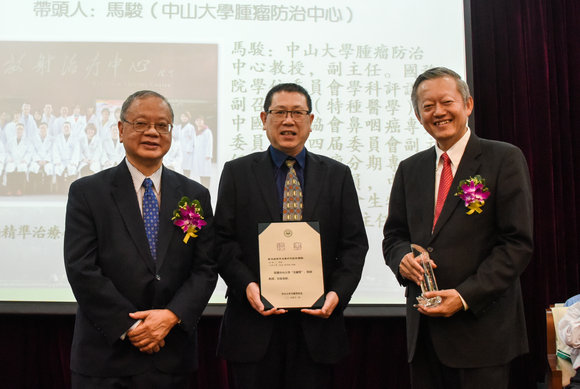 ![]() 陈春声书记致辞 ![]() 李焯芬院士致辞 ![]() 陈春声书记和李焯芬院士向鼻咽癌精准治疗研究创新团队带头人马骏教授颁奖 ![]() 陈春声书记和李焯芬院士向超分子结构与材料化学团队带头人苏成勇教授颁奖 ![]() 陈春声书记和李焯芬院士向腹部多器官移植团队代表朱晓峰教授颁奖 ![]() 陈春声书记和李焯芬院士向肿瘤组织微环境研究团队带头人郑利民教授颁奖 陈春声书记和李焯芬院士分别向获奖者颁发证书和奖杯。今年的五个获奖团队及个人分别是:鼻咽癌精准治疗研究创新团队(带头人:肿瘤防治中心马骏教授),超分子结构与材料化学团队(带头人:化学学院苏成勇教授),腹部多器官移植团队(带头人:附属第一医院何晓顺教授),肿瘤组织微环境研究团队(带头人:生命科学学院郑利民教授),刘奕志教授。