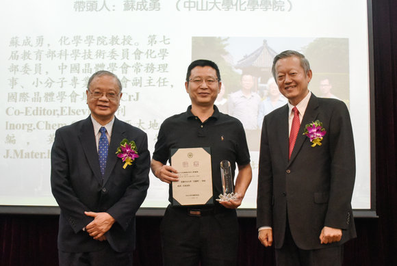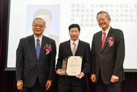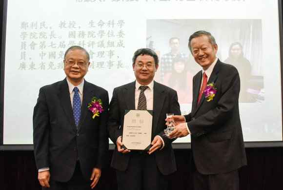 ![]() 陈春声书记和李焯芬院士向获奖个人刘奕志教授颁奖
