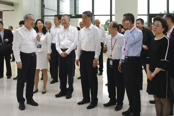 4月19日下午,香港特别行政区行政长官梁振英一行到我校考察国家超级计算广州中心。中央政府驻港联络办副主任仇鸿、广东省港澳办主任廖京山陪同考察。校党委书记陈春声、校长罗俊、粤港澳发展研究院院长郑德涛接待了代表团一行。